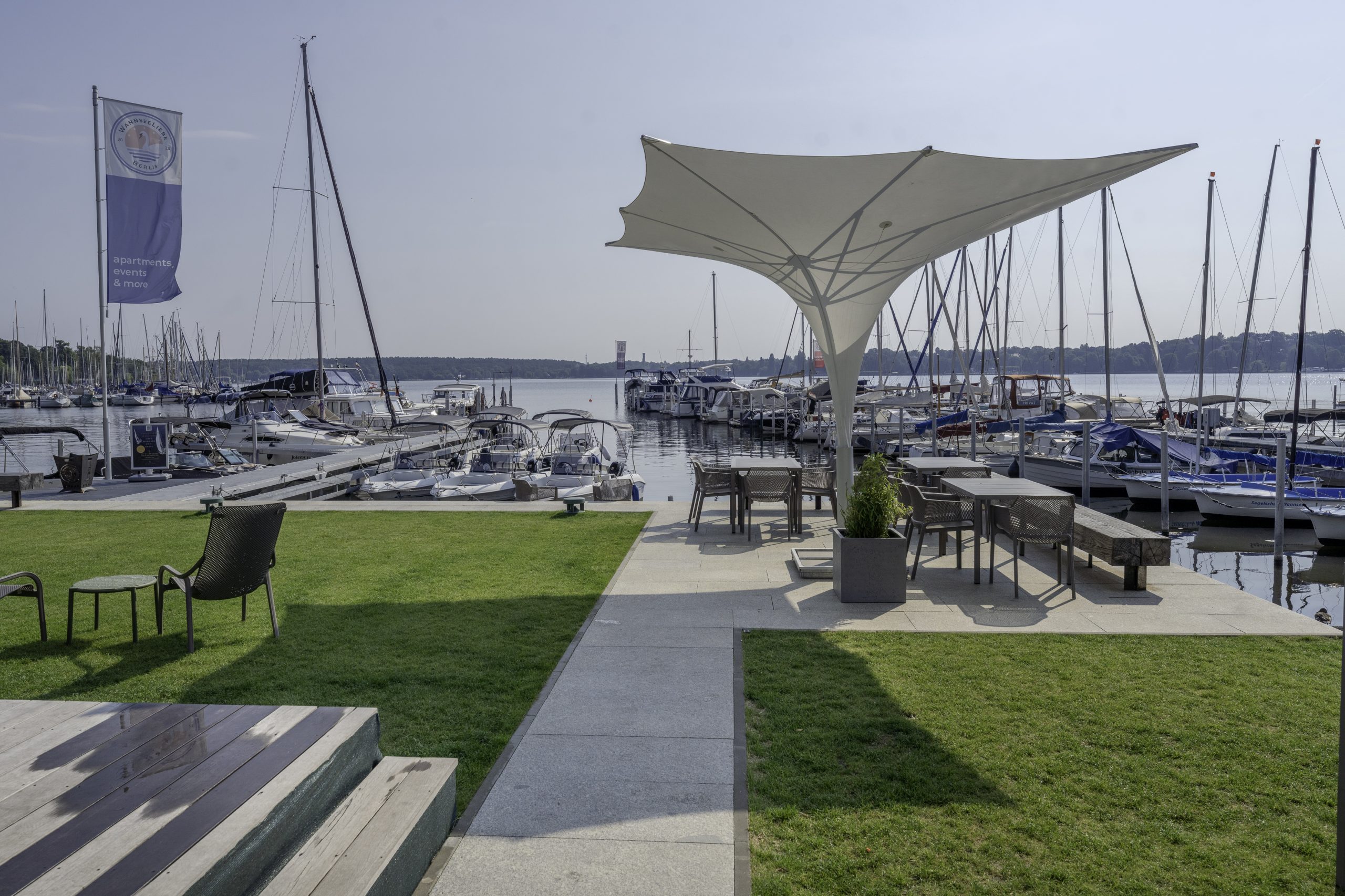 Das Ambiente der WannseeLiebe ist eine harmonische Symbiose aus Design und Natur. Umgeben von der malerischen Kulisse des Wannsees, strahlt unsere Location Ruhe und Gelassenheit aus.