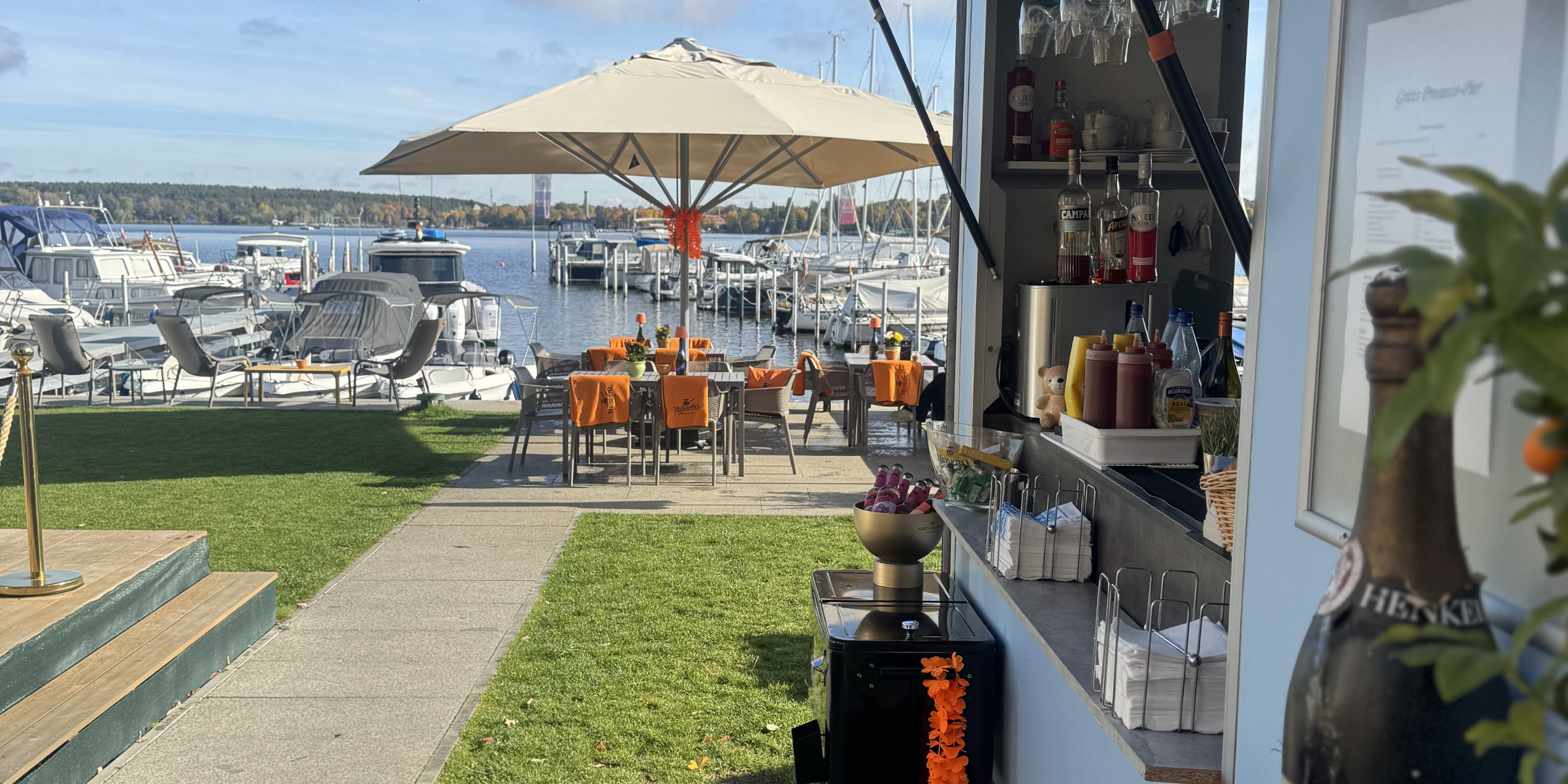 Direkt am Wasser, zwischen Bootsstegen und Sonnenglitzern auf dem Wannsee, liegt Gritt’s Prosecco Pier – ein liebevoll betriebener Foodtruck von der lieben Gritt in der Marina. Der perfekte Ort, um nach einem Bootstag, Wassersport oder Spaziergang unkompliziert und entspannt anzukommen.